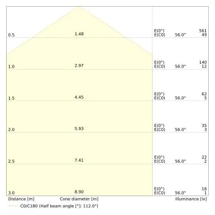 De lichtopbrengst (Lumen), geeft weer hoe krachtig het uitgestraalde licht is. Dit is belangrijk om te weten om de juiste sfeer te creëren. 0 tot 400 Lumen is bij uitstek geschikt voor accent- of sfeerverlichting. Een hoger aantal Lumen is, afhankelijk van de grootte van de ruimte, beter geschikt als ondersteunende- of basisverlichting. Heb je plafonds hoger dan 4 meter, dan is een lichtopbrengst van minimaal 8000lm aan te raden indien heldere verliching gewenst is (vb. in werkomgevingen).