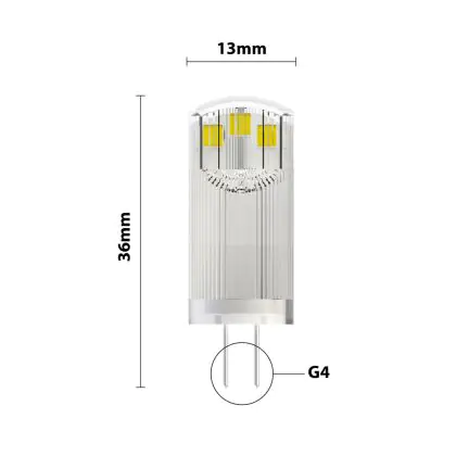 Door het kopen van dit product haal je in vergelijking met een G4 halogeenlampje duurzame verlichting binnen. Daarnaast is LED veel beter voor het milieu, omdat er geen giftige stoffen in zitten. Wel raden we je aan om de afmetingen van je huidige G4 lamp te vergelijken met die van deze G4 LED lamp. De diameter van dit product is: 13mm en de hoogte is: 36mm. Op deze manier weet je zeker of dit steeklampje wel/niet in het armatuur past. Wil je een overzicht van al onze G4 LED lampen zien? Klik dan hier.