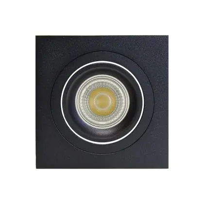 De plafondplaat van deze spot is erg dun, wat een mooie afwerking geeft na installatie. De aluminium behuizing in zwarte kleur geeft een strakke look, maar deze spot is ook in andere designs en kleuren verkrijgbaar. De spot is vierkant en strak van vorm en heeft smalle, ronde rand om de lichtbron te accenturen.