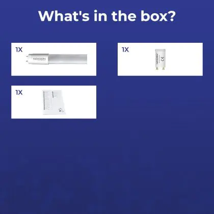 Deze Noxion LED TL buis heeft een Lumen / Watt efficiëntie van lm/W. Dit is de waarde die je verkrijgt door de lichtopbrengst (1150 Lumen) te delen door het wattage (8W) van deze lichtbron. Hoe weet je of jouw lichtbron een goede efficiëntie heeft? In dit geval ligt de lm/W waarde boven de 65. Je kunt er ook voor kiezen om een LED geïntegreerd TL armatuur te kopen. Hierbij heb je de keuze uit diverse (waterdichte) LED montagebalken, die in een divers aantal Lumen verkrijgbaar zijn. Een (dimbaar) LED paneel is ook een slimme optie, met name voor ruimtes met een systeemplafond (eenvoudige installatie) en kantoren (UGR<19 varianten).
