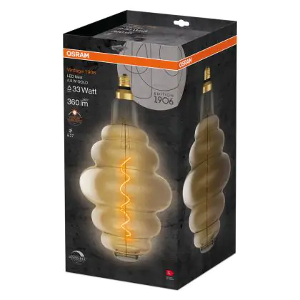 Beschrijving Osram Vintage 1906 LED E27 Special Filament Gold 4.8W 360lm - 822 Extra Warm White | Dimmable