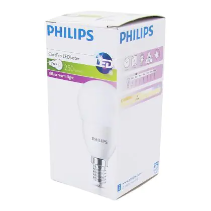 In ons assortiment E14 LED lampen valt er genoeg te kiezen. Vooral qua kleurtemperatuur (Kelvin) en vorm. Deze lamp heeft de volgende kleurtemperatuur: 2700K - Zeer Warm Wit. Hoe lager de kleurtemperatuur, hoe warmer het licht. Wil je ergens sfeer toevoegen? Kies dan voor een E14 LED lamp van 1800 tot 2700 Kelvin. Hoge kleurtemperaturen zoals 4000 en 6500 Kelvin zijn op hun beurt beter geschikt als functionele verlichting. De vorm van dit product is: Kogel. Op zoek naar een ander type E14 LED lamp? Gebruik dan het zoekfilter 'vorm' aan de linkerkant van deze pagina. Ook handig om te weten is de lichtopbrengst van deze lamp. Die is 250 lumen.