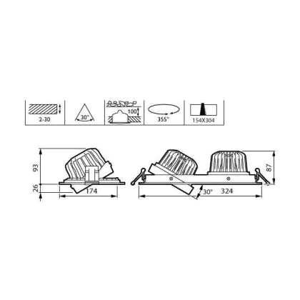 Beschrijving Philips LED Spot Greenspace Accent Gridlight Aluminium Wit 45W 3000lm 36D - 830 Warm Wit | 154mm - IP20