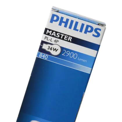 De Philips PL-L 4P lampen zijn dimbaar en door de 2G11 lampvoet makkelijk te installeren in de fitting. U herkent de Philips PL-L 36W 840 4P (MASTER) eenvoudig aan de 2G11 lampvoet met 4 pinnen. De lichtbron is 41,7 cm lang. Op het moment dat de afmeting van uw huidige lamp sterk afwijkt van 41,7 cm heeft u een ander wattage in gebruik.