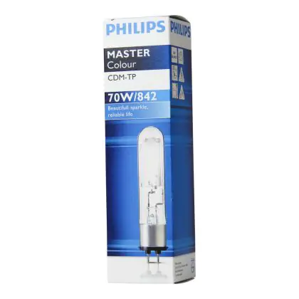 Philips CDM-TP zijn buisvormige gasontladingslampen van gehard glas. Daarbij geeft de Philips CDM-TP een sprankelend licht wat uw verlichte objecten een speciale uitstraling geeft. De Philips CDM-TP 70W 842 PG12-2 (MASTERColour) gasontladingslamp heeft een eenvoudige lampvoet, namelijk de PG12-2. De lampen zijn niet dimbaar.