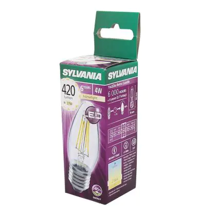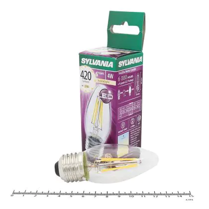 Beschrijving Sylvania ToLEDo E27 Kaars Filament Helder 4W 420lm - 827 Zeer Warm Wit | Vervangt 40W